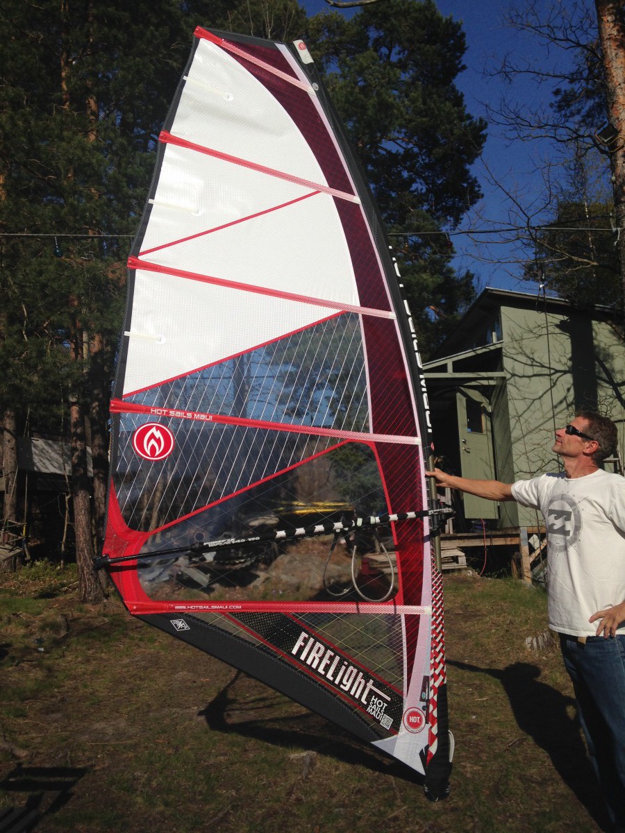 Nytt för Reef Edition är att monofilmfönstret är ersatt av en ny tunn men hållbar X-ply. Denna X-ply utvecklades av Hotsails i samarbete med en kanadensisk segeldukstillverkare vid utvecklingen av KS3. Det vill säga, oavsett till utseendet liknande Kinaproducerade dukar är denna unik för Hotsailsmaui. Den ökar inte vikten men helt klart hållbarheten. Den ger Firelight en något lite softare känsla, men absolut inte så att dess mycket karakteristiska snärtiga och “driviga” bottendrag försvinner. Seglar man mycket på vågspot som Torö, Åsa och Dalen, då rekommenderar jag absolut Reef Edition, seglar man mest där det är sandbotten eller djupare vatten, och man vill ha den absolut snärtigast tänkbara känslan, då är den vanliga versionen att föredra. Just det, ett par saker till: Jag brunkar beställa Reef Edition med en extra hållbar maststrumpa. Vanligtvis har Firelight det där superhållbara tjocka mastfickematerialet “OX-webbing”(en annan unik lösning för Hotsailsmaui) från masttoppen ner till ungefär hälften mot bomöppningen. Det räcker om det är lite djupare vatten då det är här masten skrapar mot revet. Men hemma i Sverige där vi seglar i dm-djupt är min erfarenhet att det är bra med OX-webb-strumpan hela vägen ner till bommen. Sen har man lagt på en massa nya prints: Nu står det på seglet att det är technora-material i förstärkningarna, lattfickorna är tonade i två färger, mm. Jag brukar inte gilla en massa prints, men måste nog erkänna att Firelight nu både är och ser mer genomarbetat ut än någonsin!